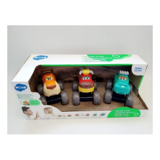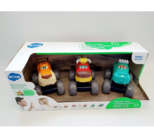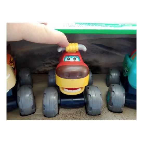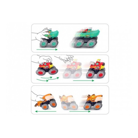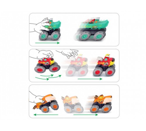 В набор входят 3 машины с мощными колесами и фиксированным инерционным рулевым управлением, которые подарят вам уникальный игровой опыт.