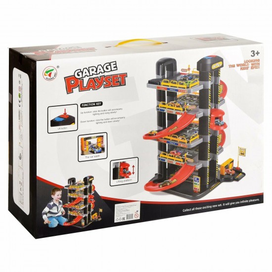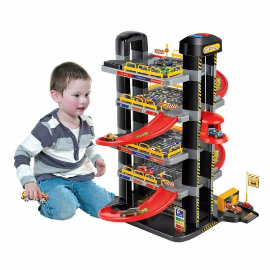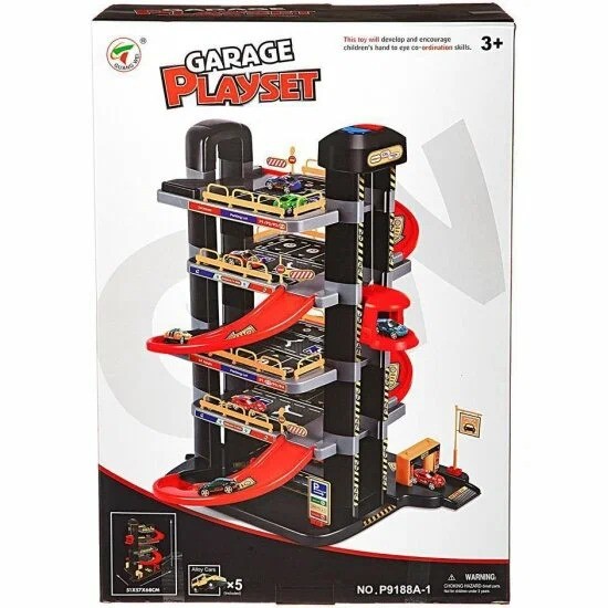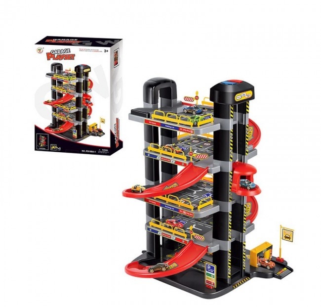 Сложный и интерактивный набор, созданный, чтобы предложить детям увлекательный игровой опыт. Комплекс представлял собой многоэтажный гараж и парковку с пандусом, взлетно-посадочными полосами и парковочными местами. В набор входят 5 машинок и различные элементы для создания полноценной игровой среды.