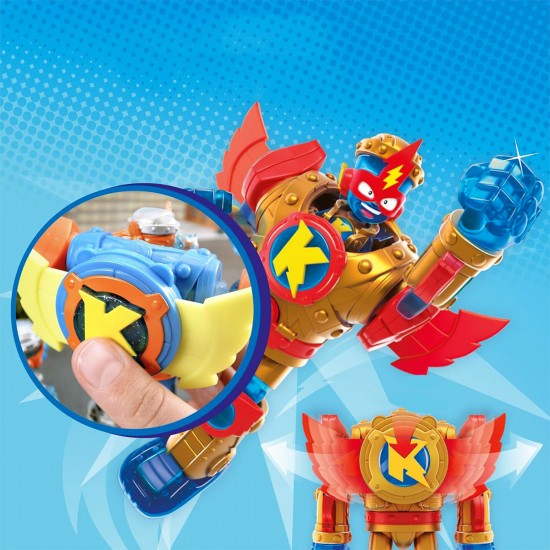 Добро пожаловать в город Кабум - место, где герои и злодеи сражаются за справедливость! Супербот Golden Armor прибыл, чтобы защитить город и объединиться с командой SuperThings. Он оснащен подвижными суставами, складными крыльями и уникальной игровой функцией, которая делает игру еще интереснее.