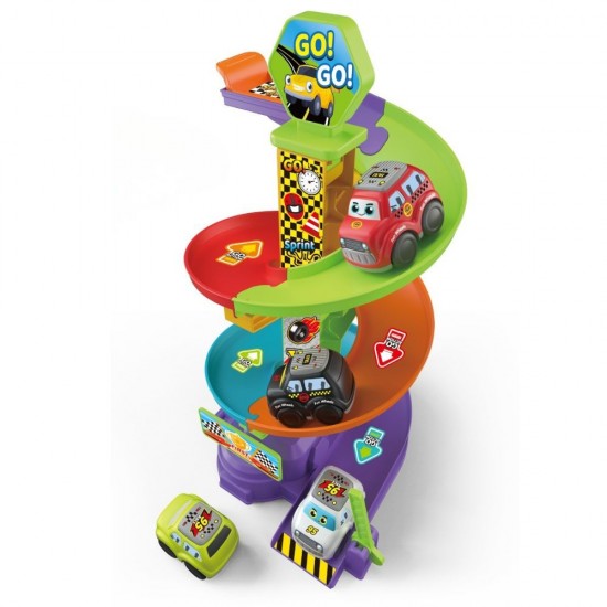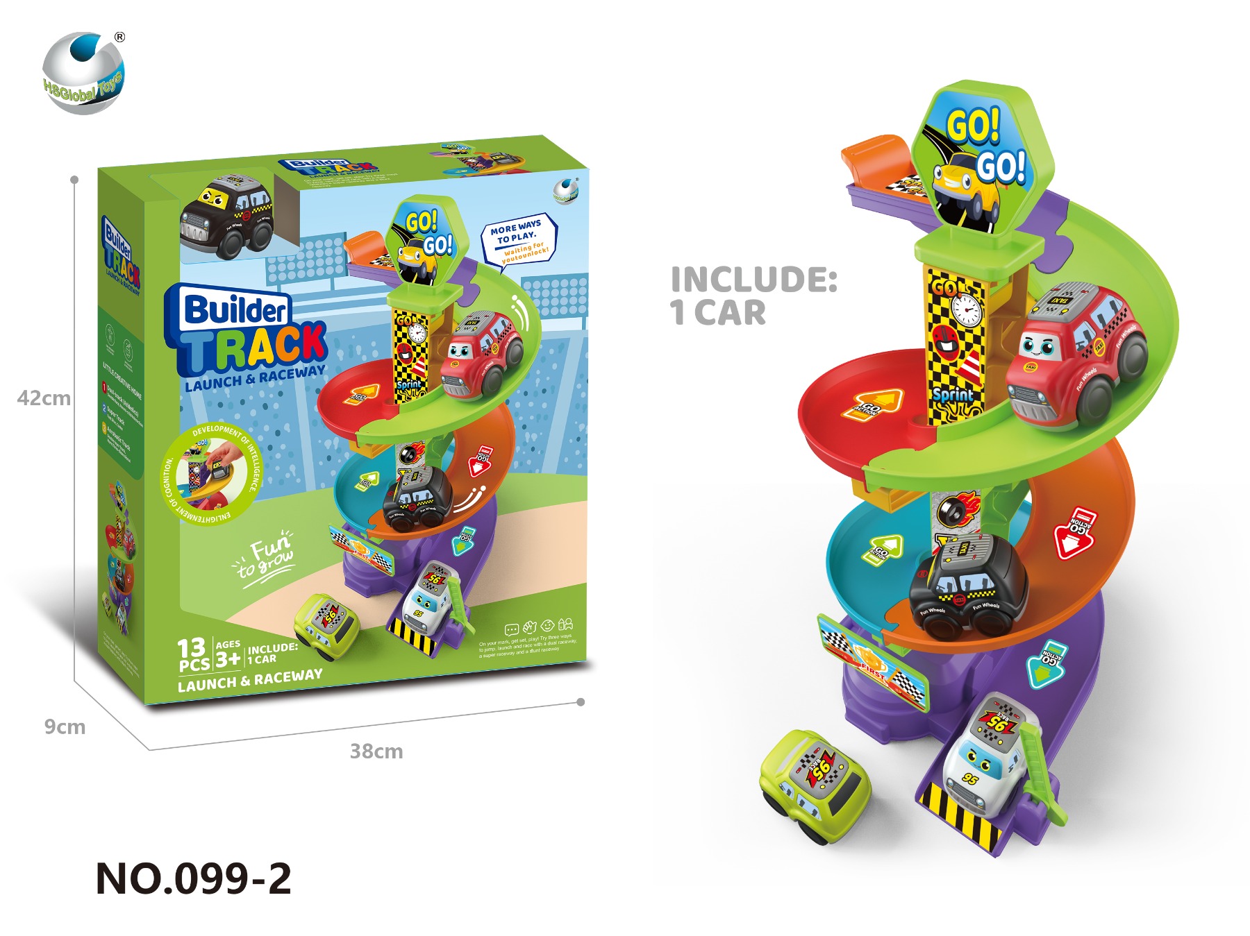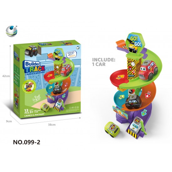 Приготовьтесь к захватывающим гонкам с набором "Builder Track"! Эта многоуровневая пусковая башня создана для того, чтобы подарить маленьким гонщикам динамичный игровой опыт. Машинка устанавливается на верхнюю рампу и по сигналу старта стремительно скатывается по спиральной трассе, преодолевая крутые виражи до самой финишной черты.