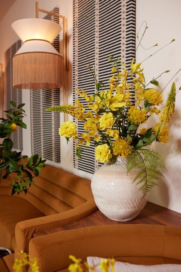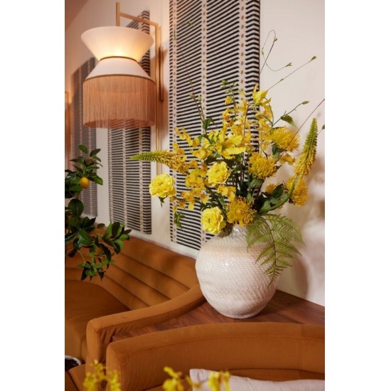 Искусственная орхидея Онцидиум жёлтого цвета, ветка 75 см - изысканный декоративный цветок из семейства орхидей, который создаст яркий и экзотический акцент в любом интерьере. Эта орхидея Онцидиум, также известная как "танцующая орхидея", поражает своей реалистичностью и нежными формами, идеально подходя для стильных композиций, декоративных ваз или экзотических букетов. Ветка жёлтой искусственной орхидеи прекрасно впишется в современный интерьер, украсит мероприятия или добавит тропическую атмосферу в дом и офис. Искусственное растение Онцидиум не требует ухода, долго сохраняет красоту и остаётся эффектным в любое время года. Изготовлено из пластмассы.