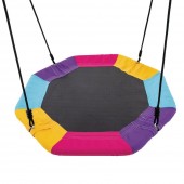Эти качели-гнездо с металлическим каркасом разработаны для обеспечения максимальной устойчивости и безопасности во время игр на свежем воздухе. Конструкция выполнена из прочной оцинкованной стали, что гарантирует надежную опору на плоских поверхностях. Просторное круглое сиденье подвешено на крепких канатах, а его рама защищена слоем мягкой пены и износостойким текстилем, предназначенным для использования на улице. Высота качелей регулируется, позволяя адаптировать их под рост ребенка. Большие размеры конструкции обеспечивают свободу движений, делая качели идеальными как для одиночной игры, так и для веселья в компании.