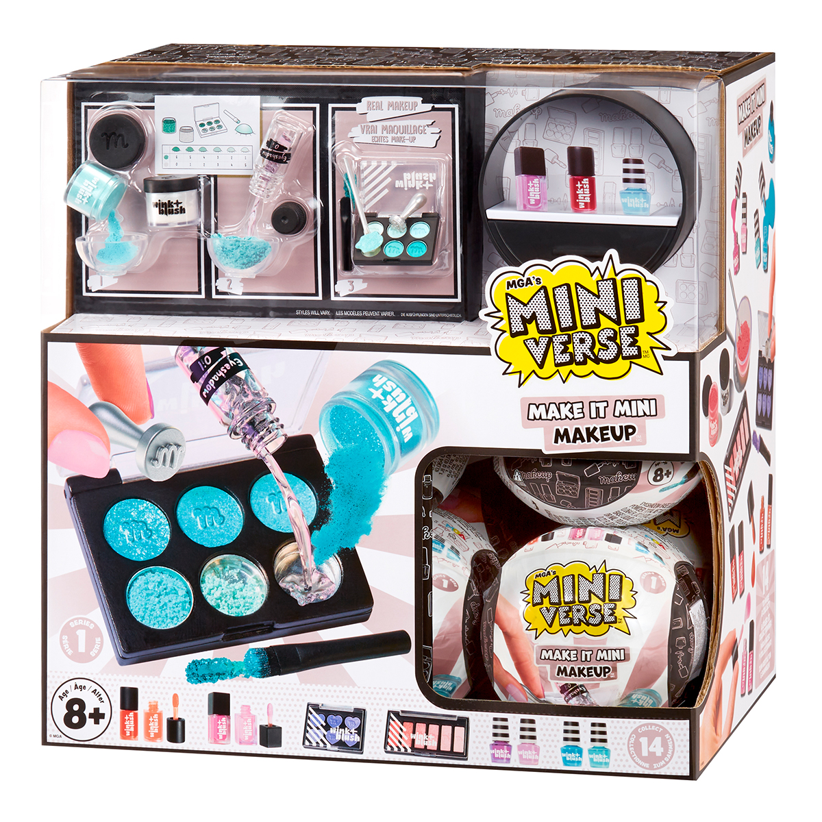 Следуйте инструкции, смешивайте ингредиенты и получите настоящее косметическое средство в мини-формате! В серии представлено 14 уникальных наборов и более 30 аксессуаров для коллекционирования: баночки, аппликаторы, наклейки и другие детали. Украсьте свою витрину и соберите полный бьюти-уголок Miniverse!