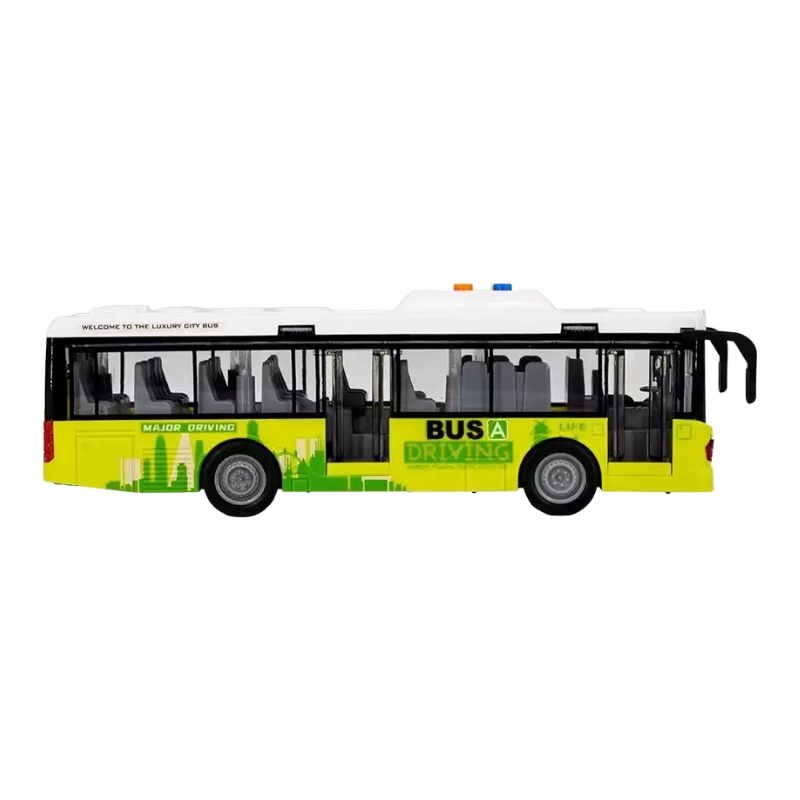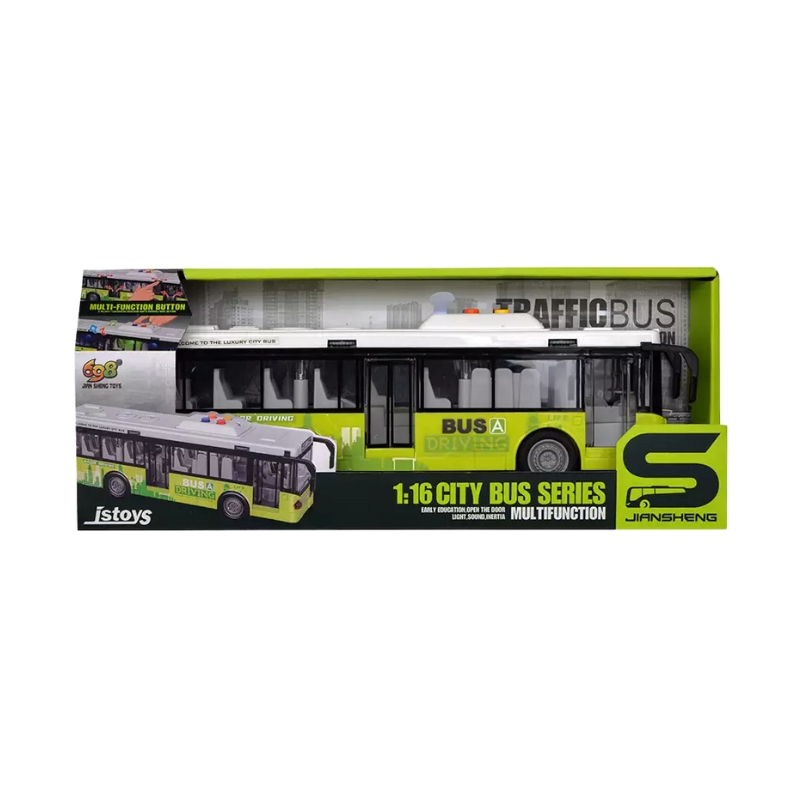 Зеленый автобус с фрикционным механизмом, со звуком и светом, 1:16, JSTOYS, ZJA314874