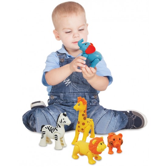 Setul de joaca cu animale salbatice vor distra copilul cu sunete amuzante. Setul include: cinci personaje de animalute salbatice. Jocul cu acest set v-a ajuta copilasul sa memorizeze cu usurinta culorile si ii va dezvolta perceptia sunetelor.