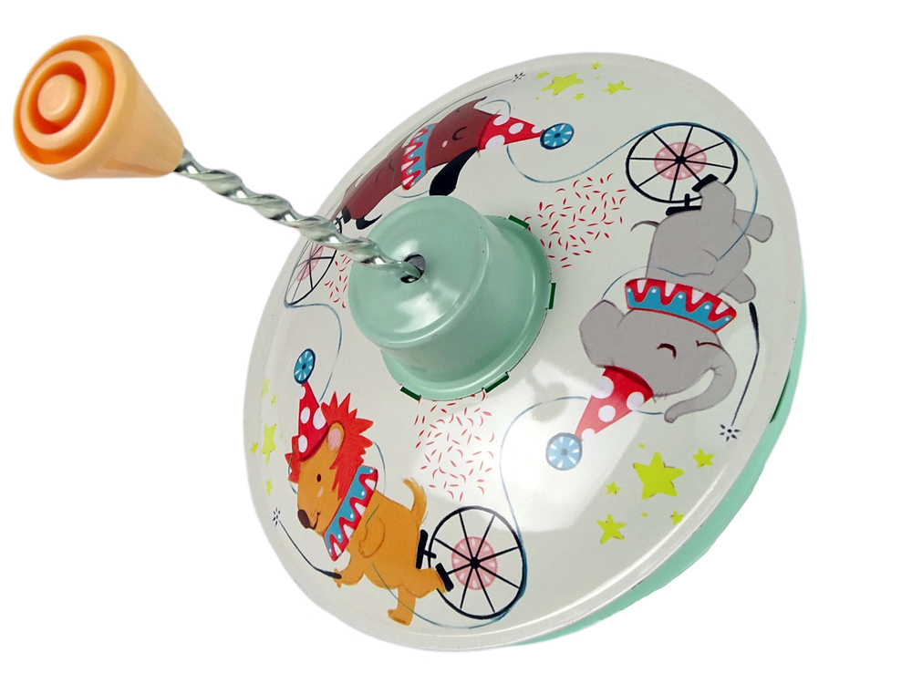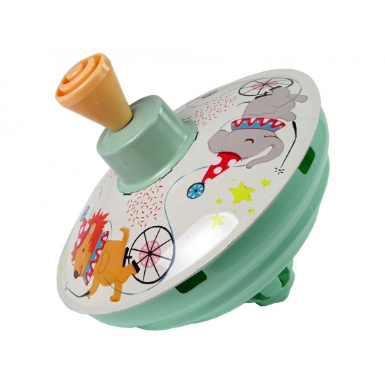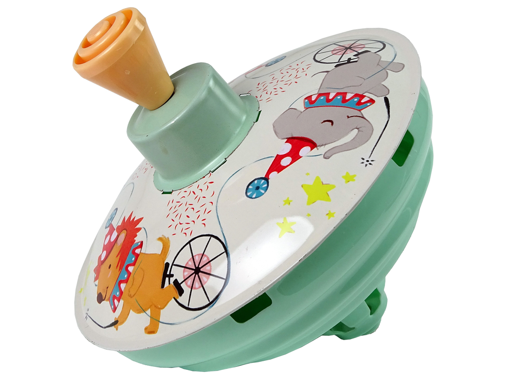 Jocul cu titirezul este atat de simplu si usor. Trebuie doar sa apuci manerul, sa apesi in jos de cateva ori iar jucaria incepe sa se roteasca in jurul axei sale. Pe masura ce se invarte, acesta scoate un sunet vesel si distinctiv care va trezi curiozitatea micutilor.