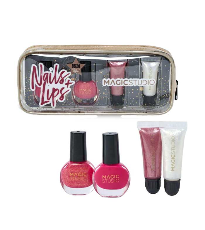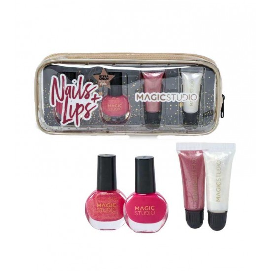 Trusa 2 lacuri de unghii si 2 balsam de buze Nail & Lips Magic Studio Colorful