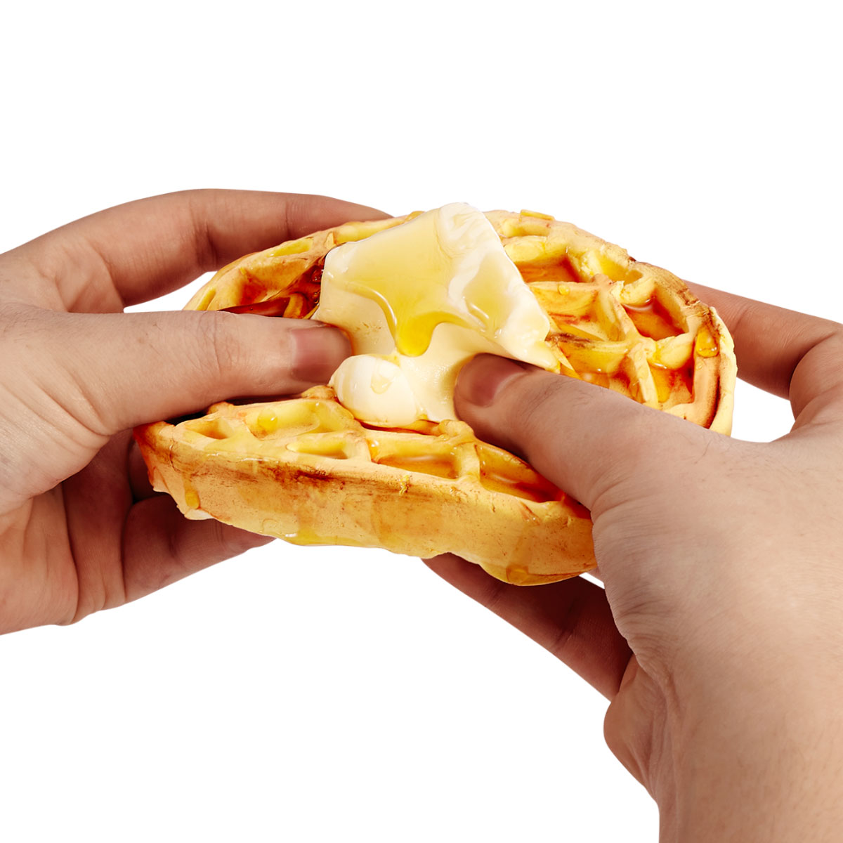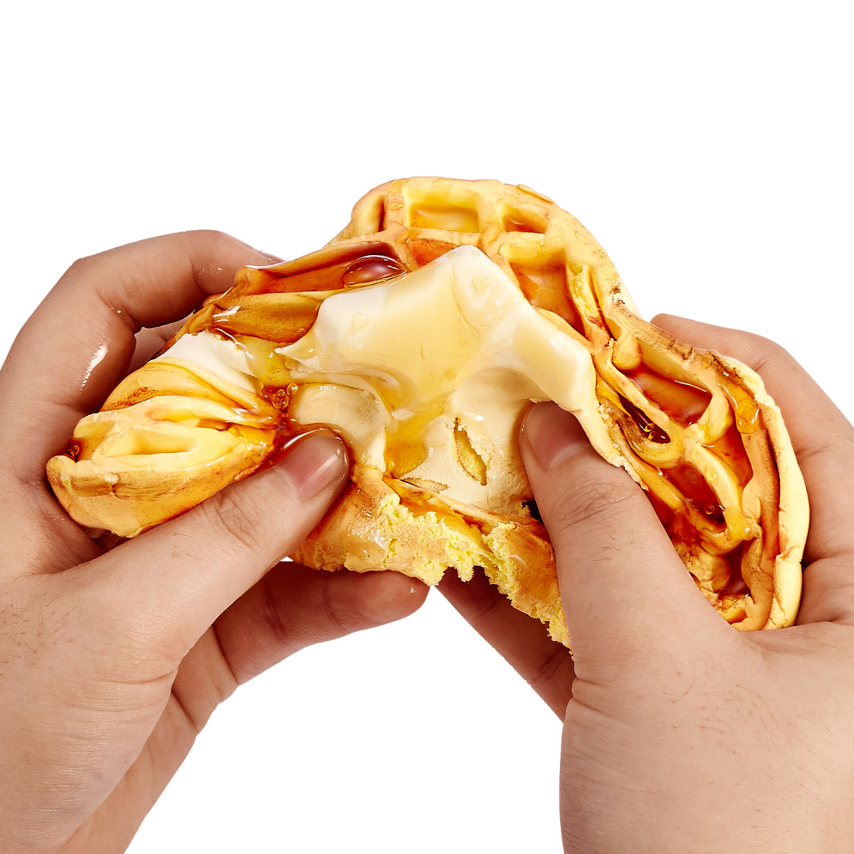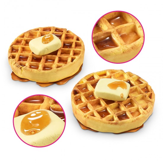Copiii pot crea si decora propriile "vafe belgiene" folosind slime colorat si accesorii incluse in pachet. Setul contine slime modelabil, forma pentru vafe, decoratiuni pentru slime, lichid decorativ tip sirop, activator, ulei pentru textura, pensula si instructiuni.