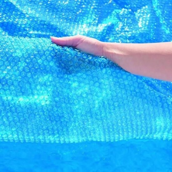 Aceasta husa solara Intex este proiectata pentru piscinele dreptunghiulare cu dimensiunile de 488 x 244 cm. Fabricata din polietilena durabila cu bule de aer sigilate si o grosime de 160 microni (150 g/m2), husa ajuta la incalzirea apei din piscina folosind energia solara si reduce evaporarea apei cu pana la 95%. De asemenea, protejeaza piscina impotriva impuritatilor si mentine temperatura apei pentru o perioada mai lunga.