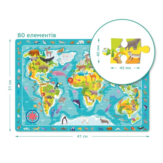 Nu exista niciodata suficiente puzzle-uri de carti, asa ca aruncati o privire la acesta cu animale dragute. Copiii vor putea explora continentele si vor putea afla mai multe despre lumea vie. De exemplu, stiti ce animale traiesc in Groenlanda? Sarcina copilului este sa gaseasca imagini din cadru pe un puzzle mare. Jocul cu un astfel de puzzle ii invata pe copii sa fie atenti la detalii si la viteza de reactie.