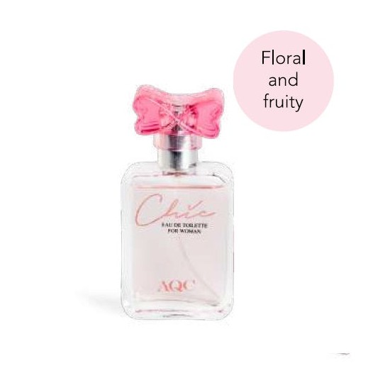 Ai grija de aspectul tau cu Aqc Fragrances CHIC. Daca va plac mirosurile fructate delicat dulci, acesta va deveni noua voastra obsesie. Un parfum floral-fructat care impleteste note de grapefruit si gutui,iasomie si senzatia moale de mosc alb.