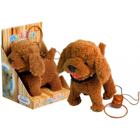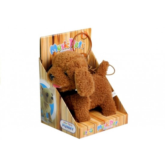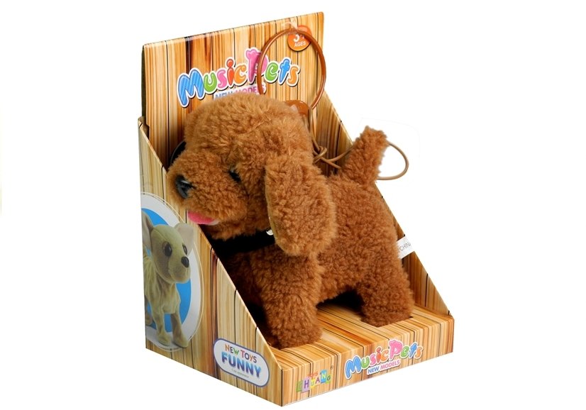 Catelusul poate merge, reproduce sunete si se comporta ca un adevarat animalut.