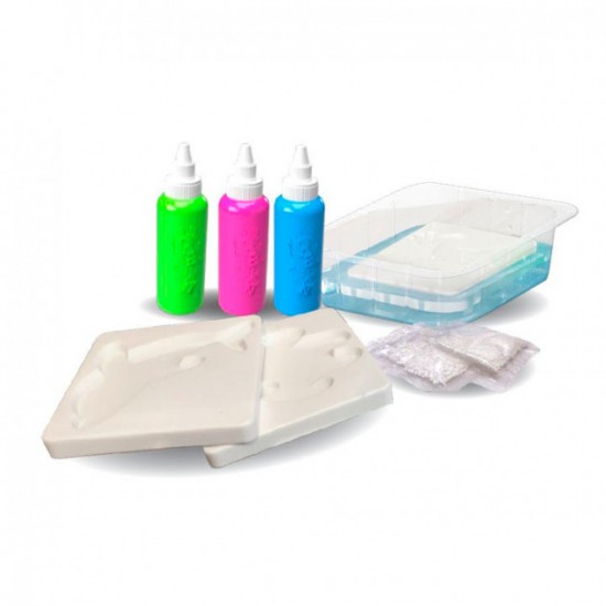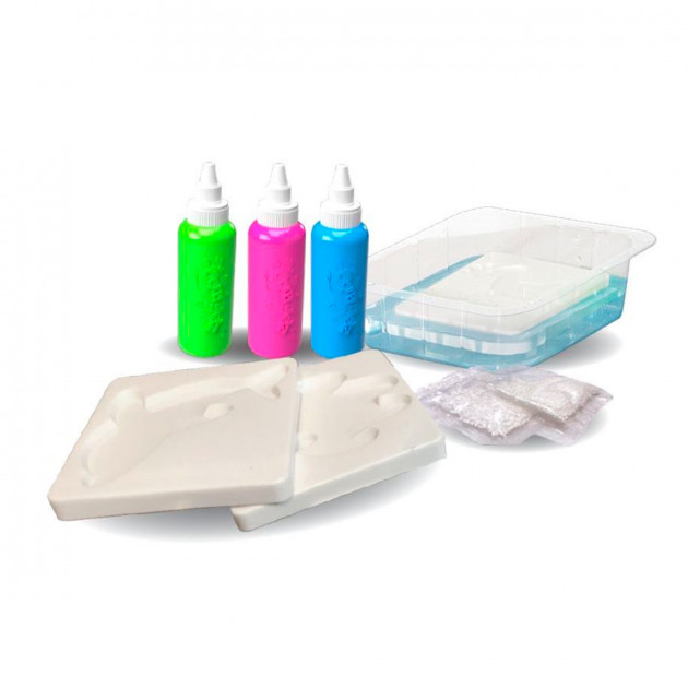 Setul include: 3 tuburi cu gel, apa magica, 2 forme, un vas si instructiunile.
