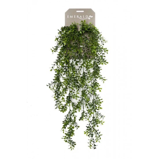 Tufa suspendata artificiala de buxus, cu 6 ramuri si o lungime de 75 cm, este ideala pentru decoruri elegante si ordonate. Frunzele mici si dese, realizate din mase plastice, ofera un aspect compact si natural, perfect pentru pereti verzi sau spatii clasice.