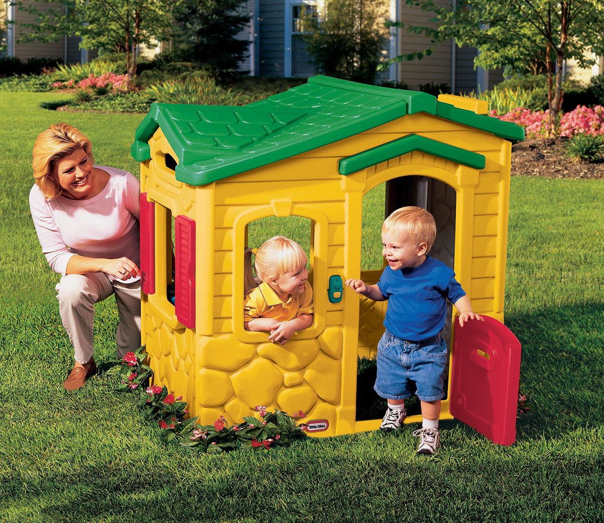 Apasa pe sonerie si zambeste! Casuta de joaca cu sonerie de la Little Tikes are ferestre largi si o usa mobila. Obloanele se pot inchide, iar copiii se pot juca de-a v-ati ascunselea in jurul casutei. Casuta include o sonerie cu 6 tonuri ce necesita 3 baterii de tip AAA.