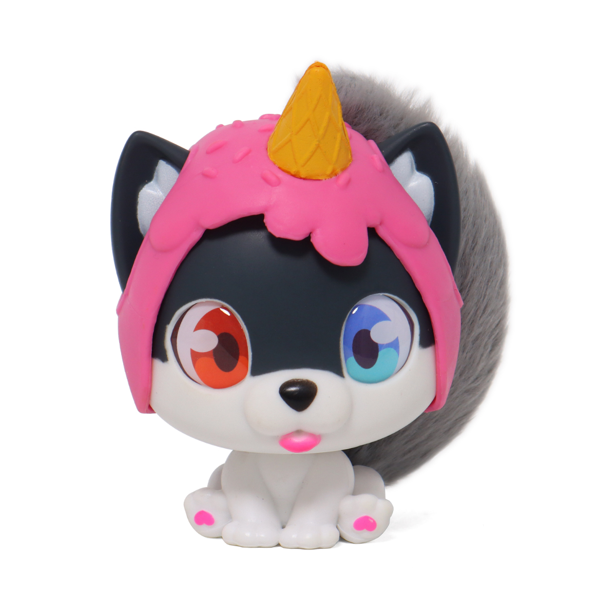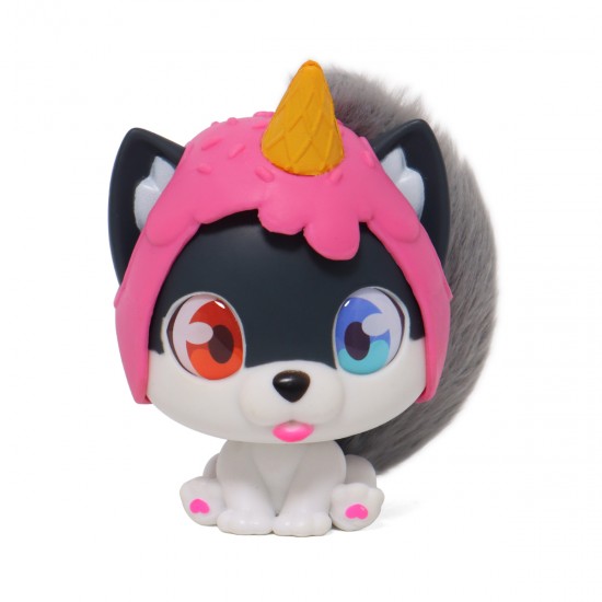 Ambalajul este o casuta de asamblat, pe care copilul o poate construi singur si o poate decora cu stickere. In interior se gasesc 6 surprize cu accesorii, ideale pentru joaca de rol si personalizarea catelusului. Figurina este realizata in stil anime chibi, cu cap mare si corp mic, super simpatica. Cookie are o codita pufoasa detasabila ce poate fi pieptanata cu peria-ineI inclusa. In plus, setul contine un bratara a prieteniei cu charm pentru copil.