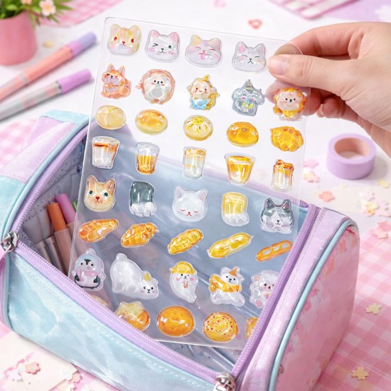 Stickerele au efect tridimensional, textura placuta la atingere si culori pastelate, ideale pentru a adauga un plus de farmec obiectelor tale preferate. Decoreaza caiete, agende, felicitari sau cadouri si transforma-le in accesorii unice, pline de personalitate.