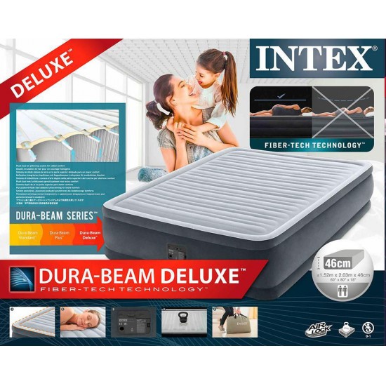Pat gonflabil “Velur Comfort-Plush” 152х203х46 cm cu pompa incorporata 220V, pana la 272 kg, INTEX