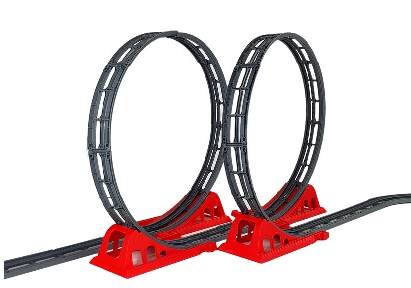 Pista are 2 bucle. Dupa pornire, putem admira cum accelereaza trenul nostru. Tor are mai multe caracteristici. Ridicarea rapida in partea de sus a vehiculului nostru, capacitatea de a conduce trenul cu capul in jos si rotatia de 360 ??de grade!