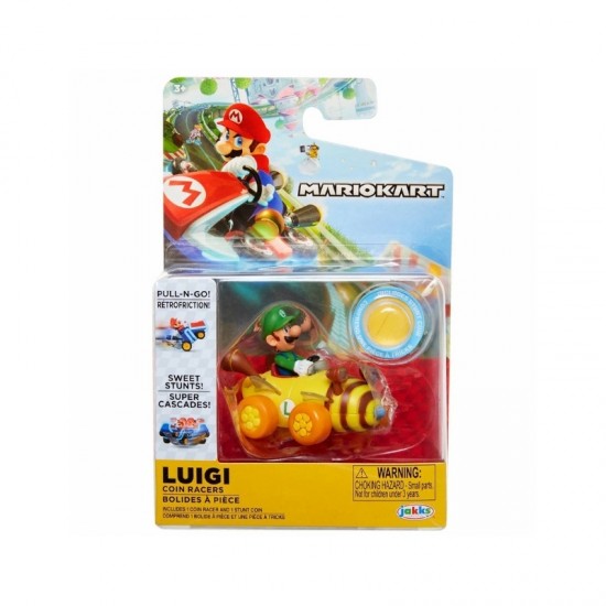 Masinuta Super Mario Coin Racers Wave 1 - Luigi este o jucarie interactiva si distractiva, perfecta pentru copiii pasionati de universul Nintendo. Cu un design inspirat din indragitul personaj Luigi, aceasta masinuta de aproximativ 6 cm aduce actiunea din jocuri direct in lumea reala.