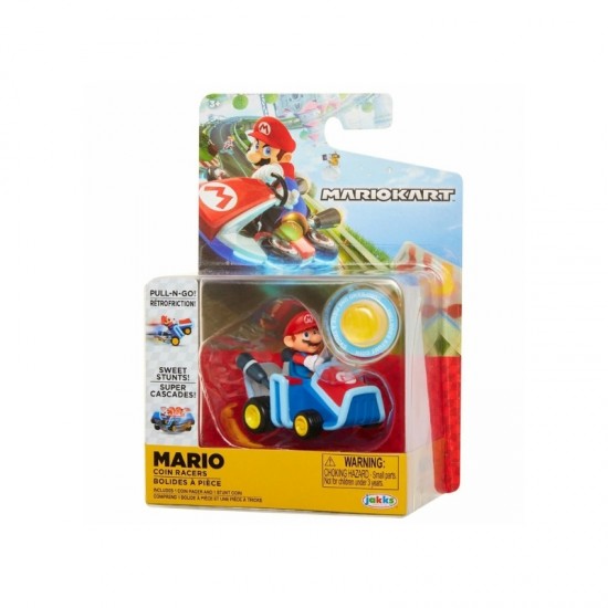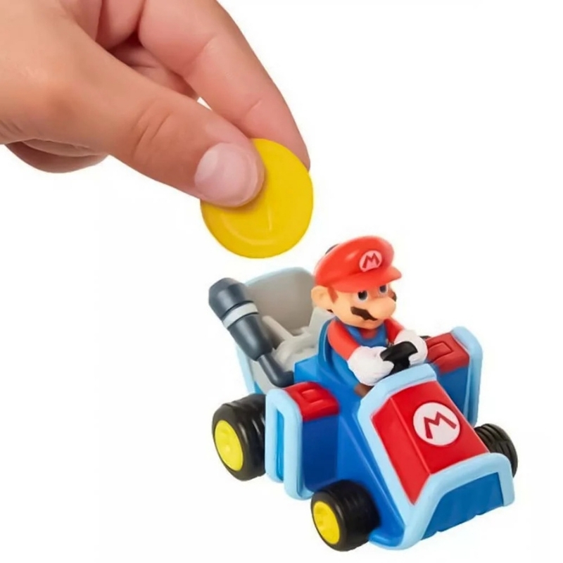 Masinuta Super Mario Coin Racers Wave 1 - Mario este o jucarie interactiva si distractiva, perfecta pentru copiii pasionati de universul Nintendo. Cu un design inspirat din indragitul personaj Mario, aceasta masinuta de aproximativ 6 cm aduce actiunea din jocuri direct in lumea reala.