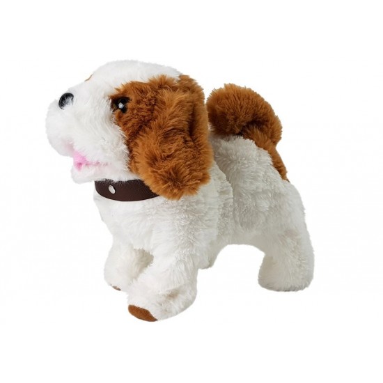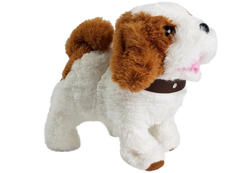 Culorile albe cu pete maronii pe urechi si coada seamana cu un caine adevarat. Este foarte placut la atingere si are o curelusa maro.