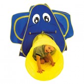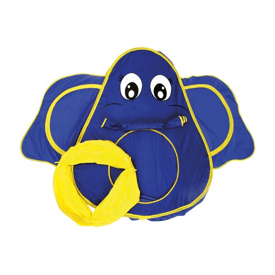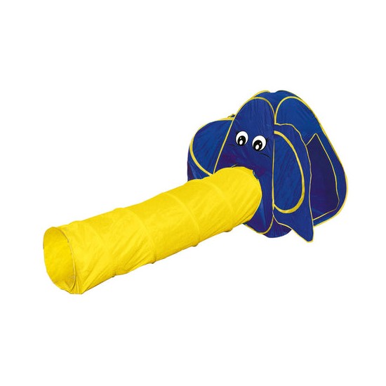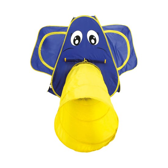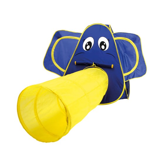 Tunel+Cort de joaca, Elefant, albastru-galben, 287x94x122 cm