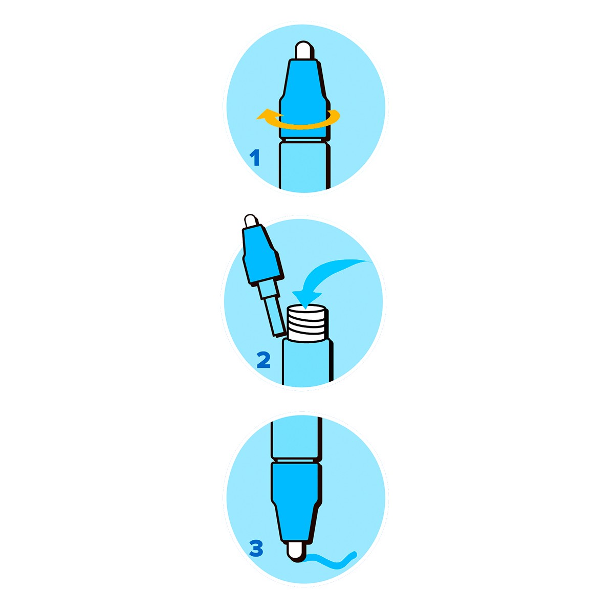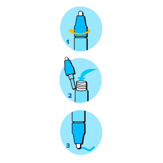 Stiloul se umple cu apa, iar datorita protectiei sistemului de deschidere, copiii nu vor putea deschide pixul, varsand astfel apa din interior.