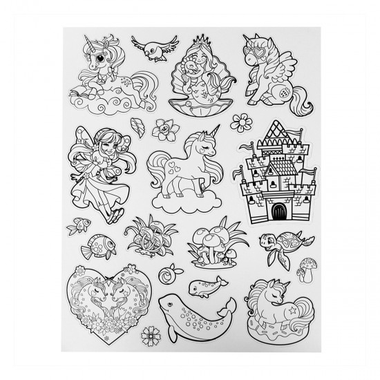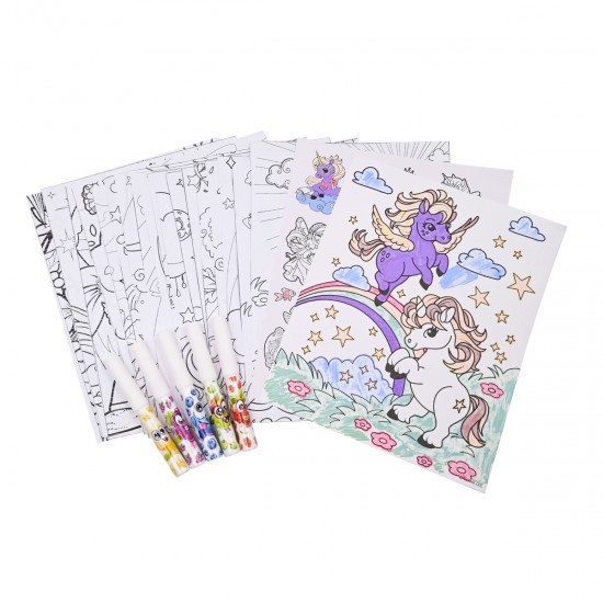 Set pentru creatie cu markere, planse de colorat si autocolante -Lumea fermecata -Scentos