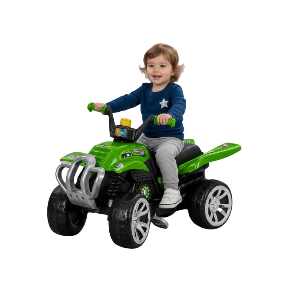 Fabricat din materiale durabile, ATV-ul Big Quad este stabil, rezistent si usor de intretinut. Pedalele functionale ajuta copiii sa invete principiile miscarii si sa isi dezvolte forta picioarelor intr-un mod distractiv. Culoarea verde face ATV-ul si mai atragator si adauga veselie jocului.