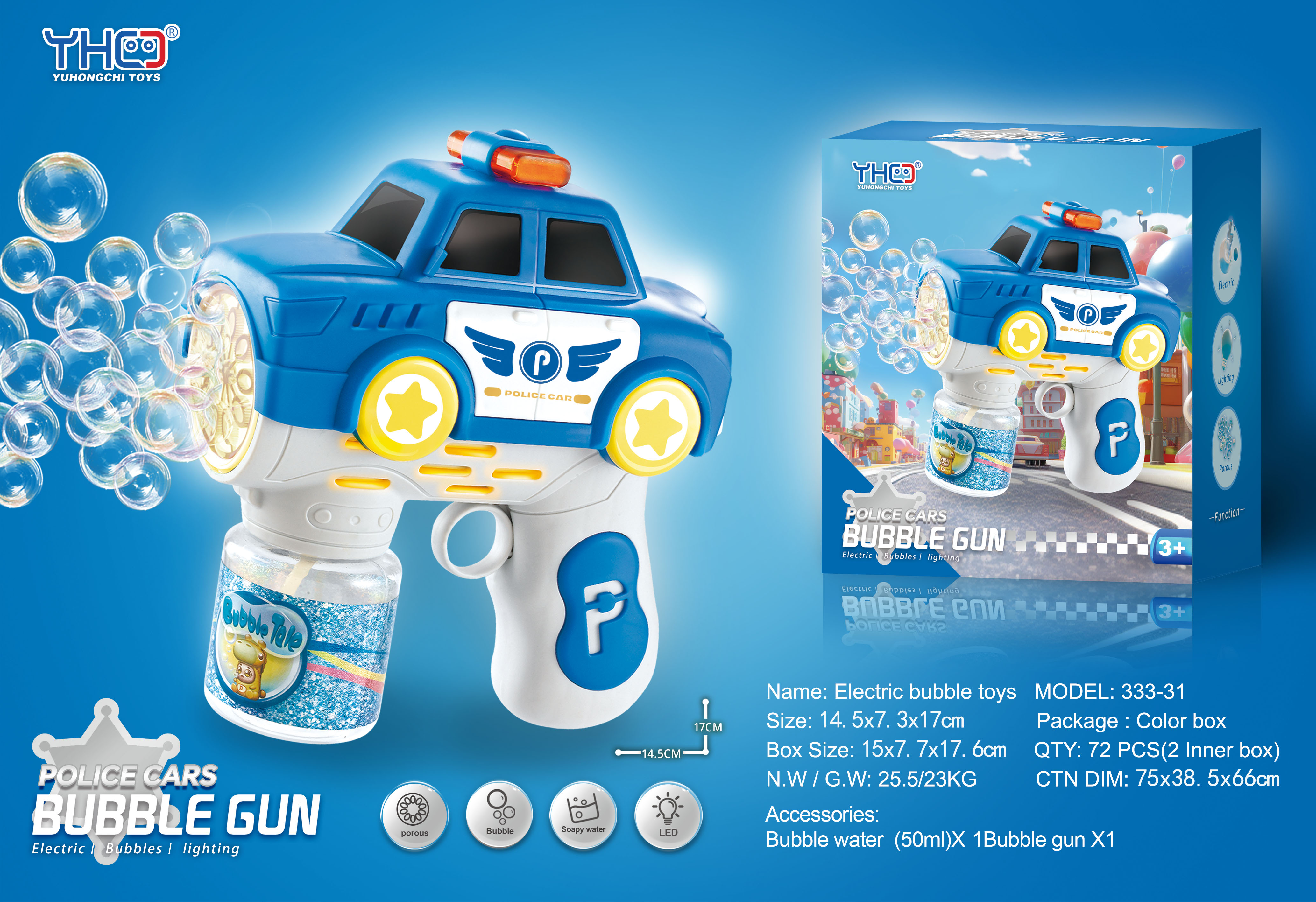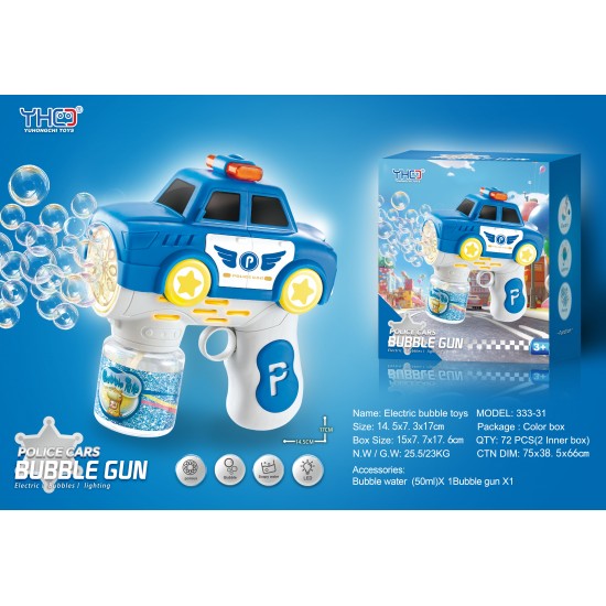 Pistol automat de baloane de sapun pentru copii, model Masina de Politie cu lumini, ZJA405378, 3 ani+