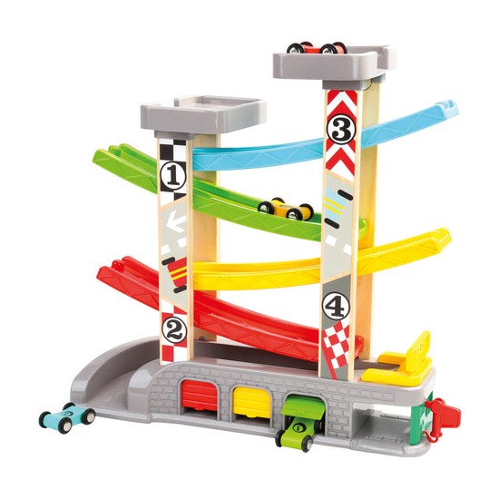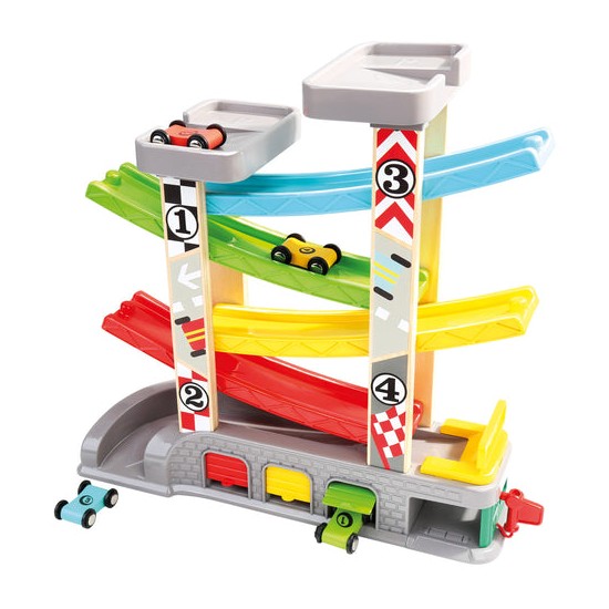 Joc din lemn Curse pe Rampa cu parcare si 4 masinute