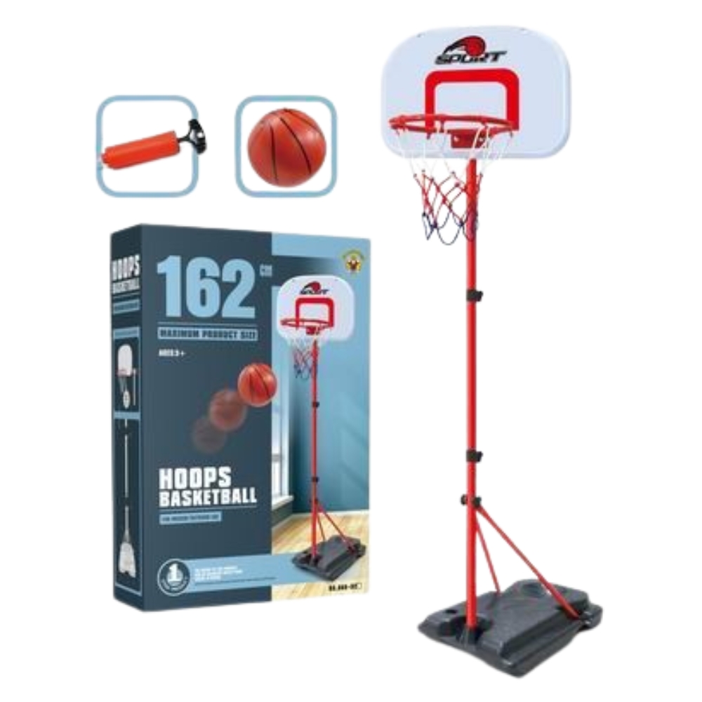 Fabricat din materiale durabile - metal rezistent si polimeri de inalta calitate - setul este perfect atat pentru antrenamentele din interior, cat si pentru distractia in aer liber. Pachetul vine echipat cu tot ce este necesar pentru a incepe meciul imediat: o minge de baschet dimensionata pentru copii si o pompa de umflat. Este solutia perfecta pentru a dezvolta coordonarea, precizia si un stil de viata activ.