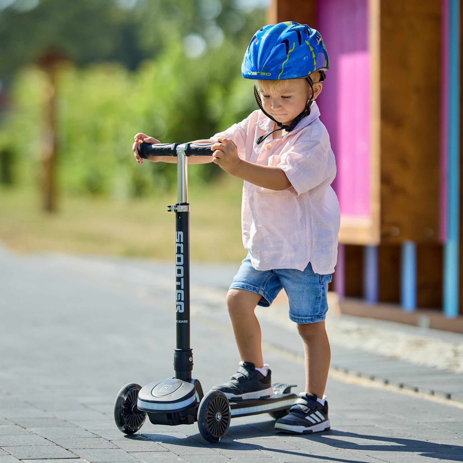 Trotineta - Scooter cu iluminare LED este ideala pentru copiii care invata sa isi mentina echilibrul si sa dezvolte coordonarea miscarilor in timp ce se distreaza. Designul stabil si usor de utilizat face ca aceasta trotineta sa fie potrivita chiar si pentru copiii care nu se simt inca siguri pe trotinetele clasice.