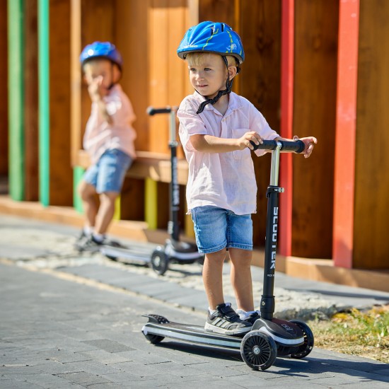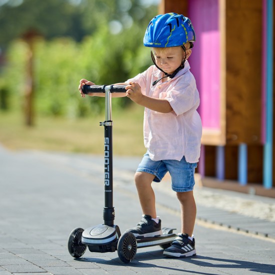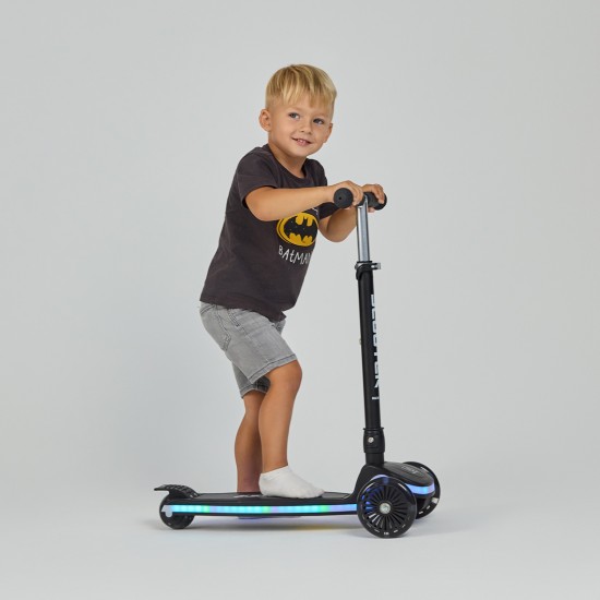 Trotineta pentru copii cu 3 roti LED si platforma cu LED, Scooter, Negru, Adamex