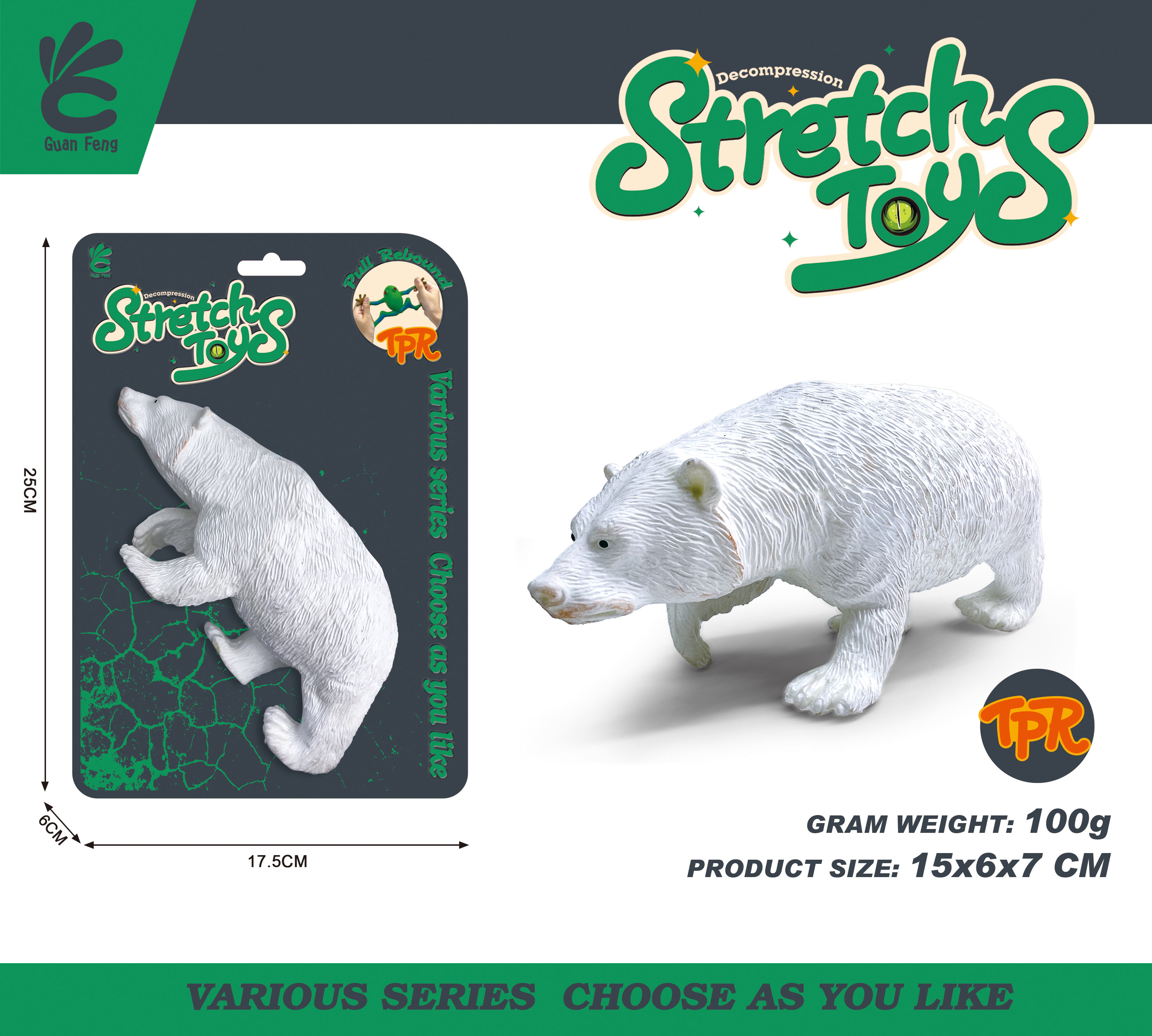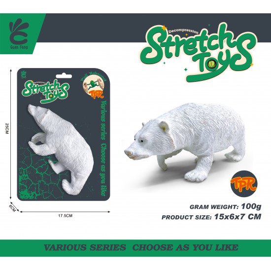 Exploreaza tinuturile inghetate cu figurina elastica Urs Polar! Aceasta jucarie interactiva este fabricata dintr-un material special, extrem de maleabil (TPR), care permite copiilor sa o intinda si sa o stranga in mod repetat, revenind intotdeauna la forma sa originala. Designul realist, cu textura ce imita blana si detalii anatomice bine definite, face ca acest urs sa fie o piesa de baza in orice colectie de animale arctice.
