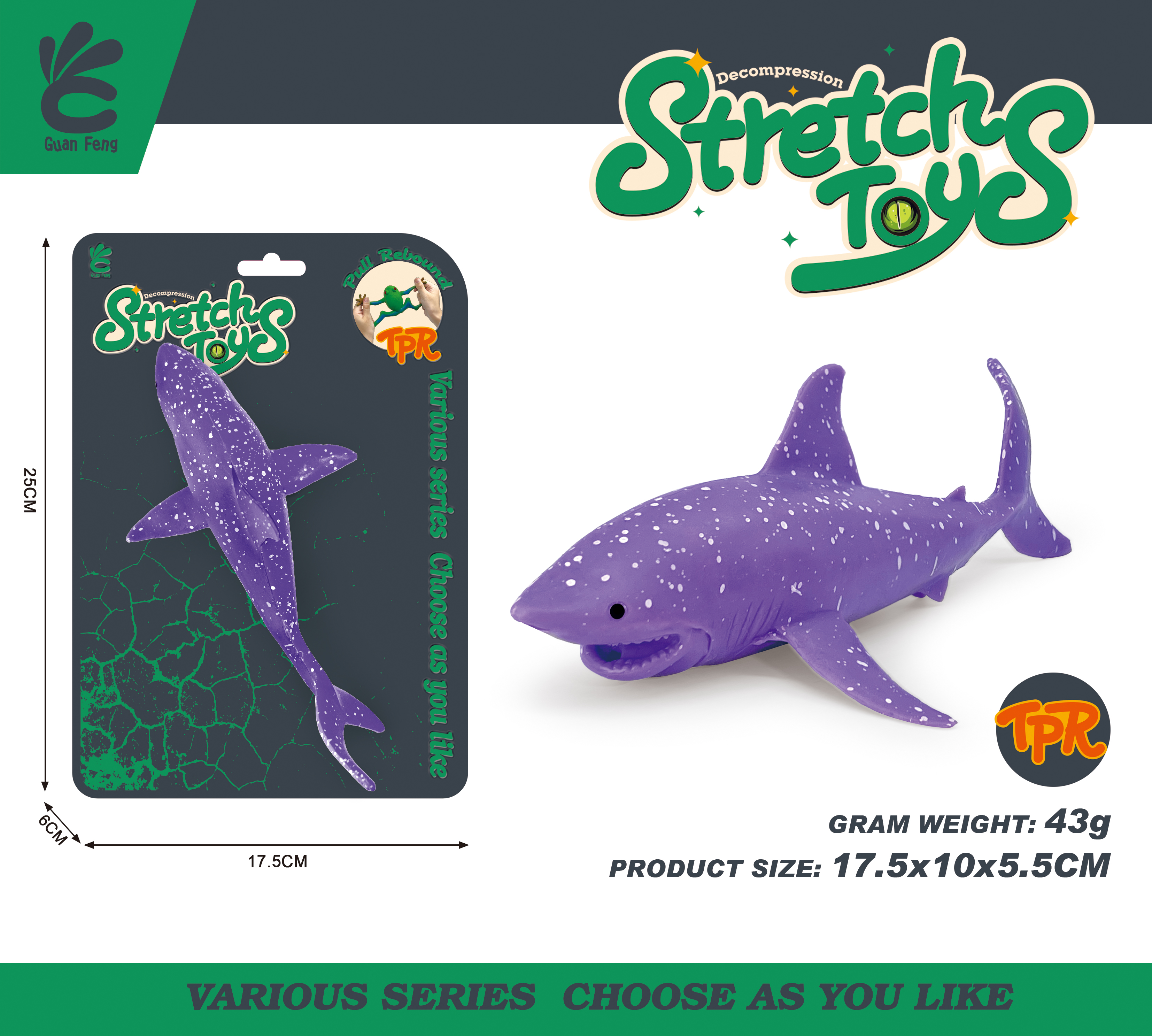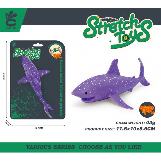 Scufunda-te intr-o lume plina de culoare cu figurina elastica Rechin violet! Aceasta jucarie interactiva atrage privirile prin nuanta sa vibranta de violet decorata cu pictele albe, oferind un aspect unic si fascinant. Fabricat din material TPR (cauciuc termoplastic) de inalta calitate, rechinul este extrem de flexibil si moale, fiind proiectat sa reziste la intinderi si strangeri repetate.