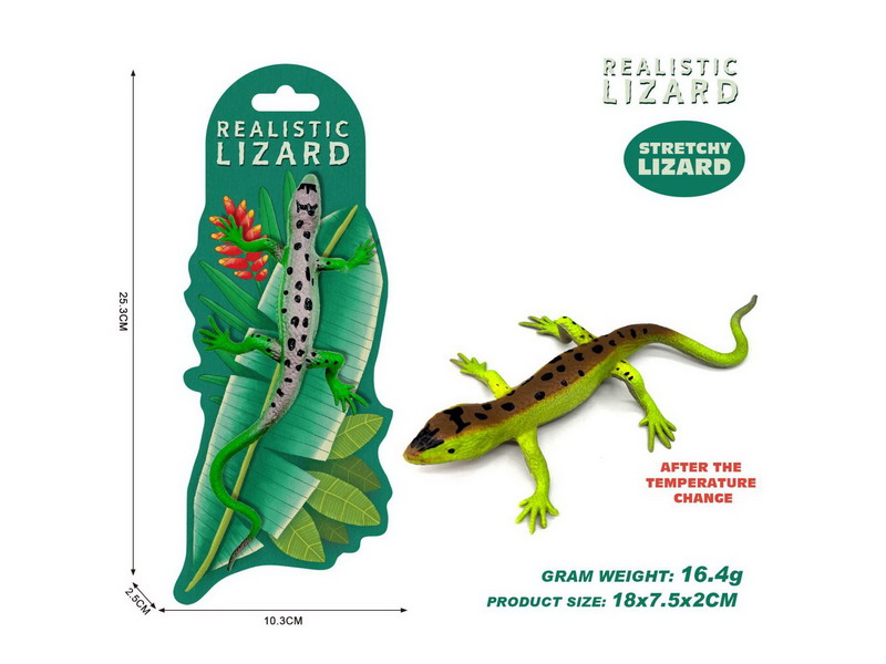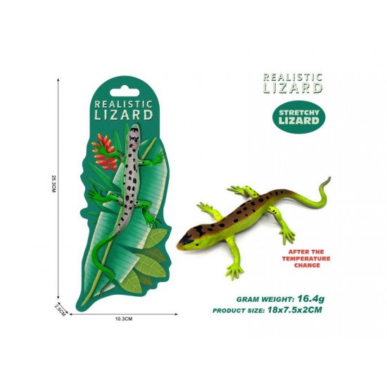 Figurina elastica Soparla verde pestritata, schimba culoarea la caldura, 18 cm, ZJA402118, 3 ani+