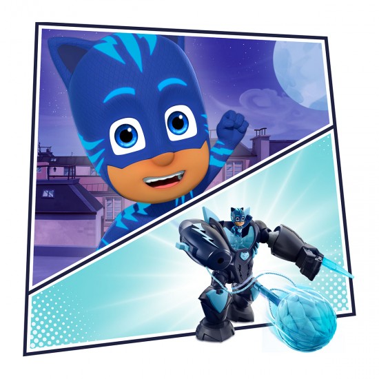 Costumul mecanic se potriveste tuturor figurinelor PJ Masks de la Hasbro.