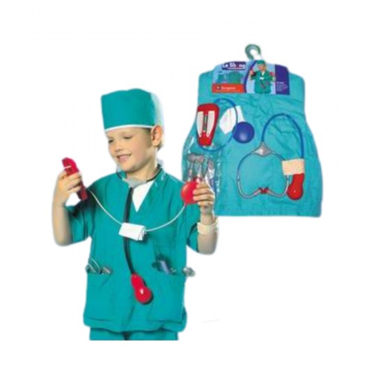 Costumul este realizat dintr-un material confortabil si durabil, de culoare azurie cu o tunica si pantaloni medicali. Setul vine echipat cu o varietate de accesorii care imita uneltele folosite de medicii adevarati: stetoscop, siringa, termometru, ciocanel pentru reflexe. Setul ofera ore de distractie creativa, contribuind la dezvoltarea imaginatiei, empatiei si abilitatilor sociale.
