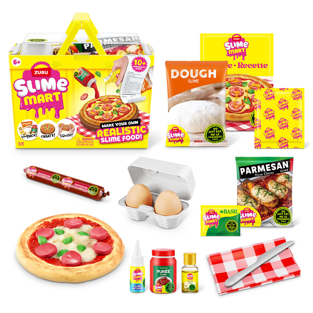 Setul de joaca cu slime Slime Mart seria Shopping Basket - Pizza de la Zuru este un set creativ DIY cu slime, recomandat pentru copii de la 6 ani in sus. Acest set distractiv permite copiilor sa creeze, modeleze si decoreze pizza din slime folosind componente speciale incluse in pachet, combinand jocul senzorial cu imaginatia.