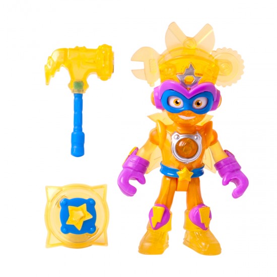 Kid Kazoom intra in lupta cu ciocanul de jucarie si scutul incluse in set. Accesoriile pot fi atasate si pe masina, astfel incat eroul sa fie mereu pregatit pentru confruntari epice. Designul detaliat, cu elemente semitransparente, face joaca si mai captivanta.