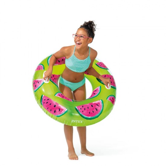 Colac gonflabil cu manere Tropical Fruit, 107 cm, max. 80 kg, Verde, 9+ ani, Intex 56261