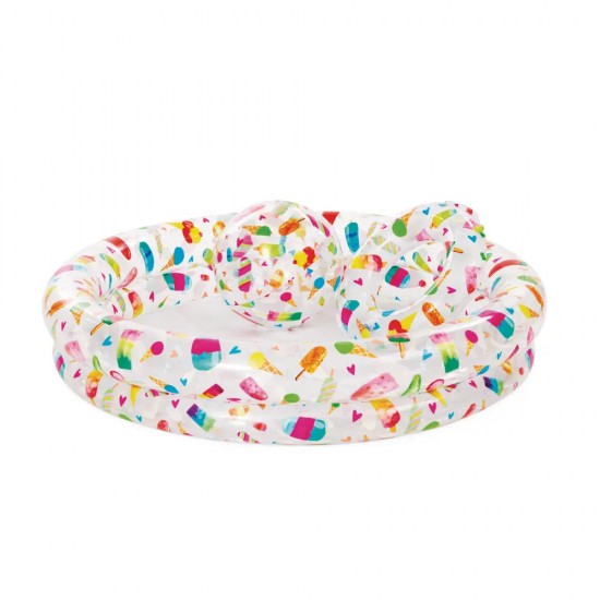 Piscina gonflabila pentru copii Ice Pop cu minge si colac, 122x25 cm, 150 L, 2+ ani, Delicii, Intex 59460