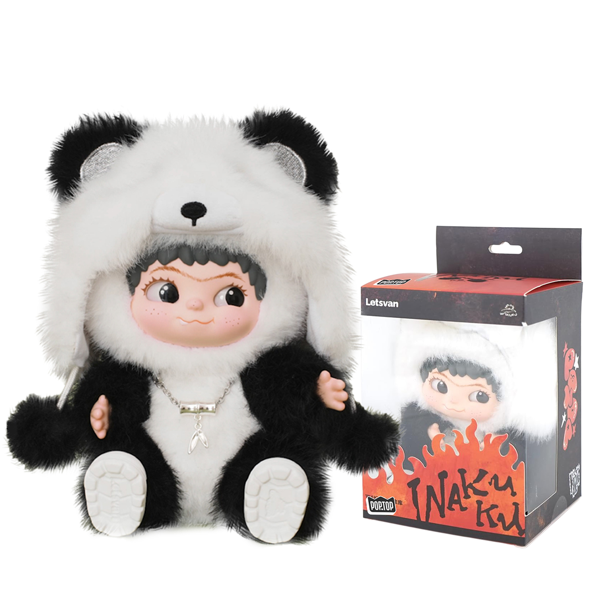 Figurina de colectie pufoasa breloc POP TOP Letsvan seria Wakuku – Panda editie limitata