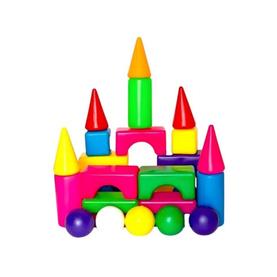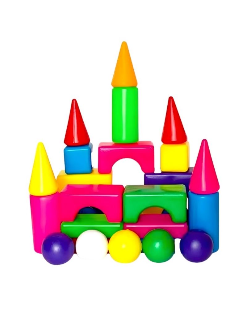 Setul de constructie cu 43 piese mari, colorate si rezistente este potrivit pentru copiii de la 2 ani in sus. Blocurile sunt fabricate din mase plastice sigure, usor de manevrat si de imbinat, ideale pentru dezvoltarea creativitatii si a coordonarii mana–ochi. Copiii pot construi castele, forme sau diverse structuri intr-un mod distractiv si educativ. Perfect pentru joaca zilnica acasa, la gradinita sau ca un cadou vesel si util.