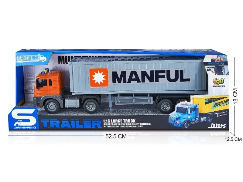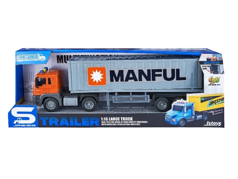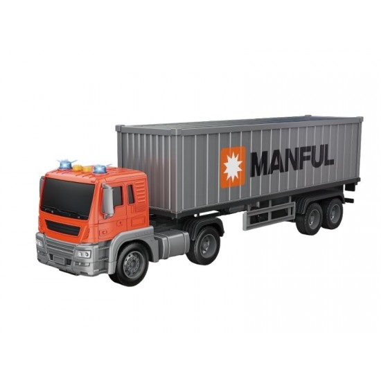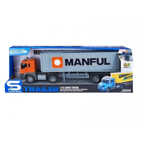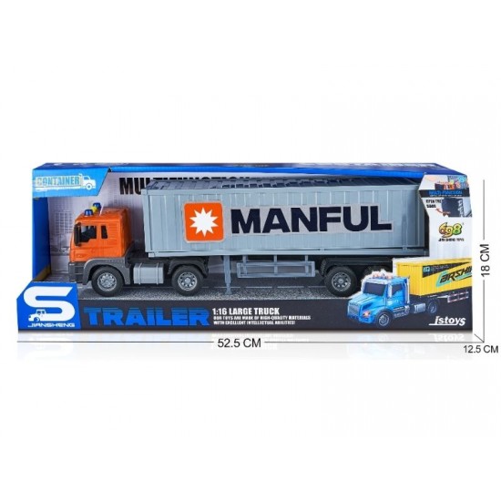 Camion transportator container, frictiune, sunete si lumini, 1:16, JSTOYS, ZJA369230