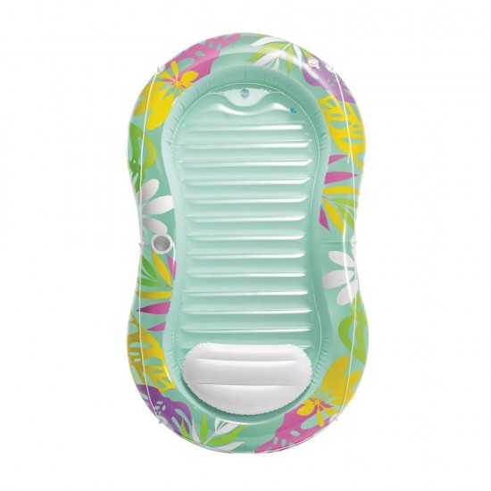 Salteaua-sezlong Tropical Oasis de la Intex este alegerea perfecta pentru zilele insorite, oferind un mix ideal intre confort premium si stabilitate pe apa. Designul ergonomic tip sezlong, completat de perna integrata, asigura o pozitie de relaxare superioara pentru cap si gat. Marginile laterale inaltate ajuta la mentinerea echilibrului, in timp ce suprafata generoasa permite utilizatorului sa se relaxeze in voie. Culorile vibrante si designul tropical o fac usor de remarcat la piscina sau pe mare, fiind un accesoriu durabil si atractiv pentru orice vacanta.