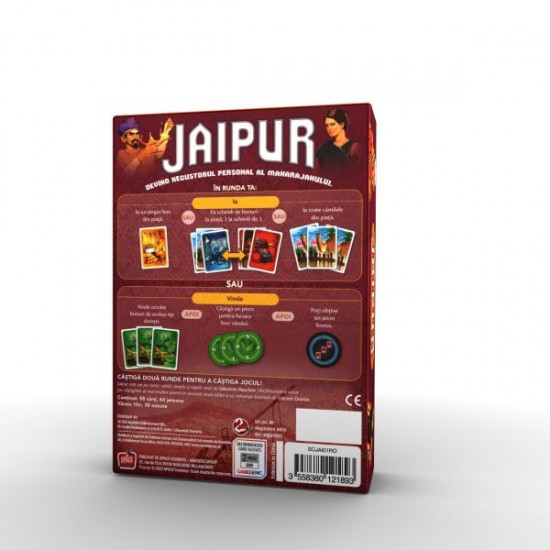 Jaipur este un joc de societate strategic si dinamic pentru 2 jucatori, conceput pentru a pune la incercare abilitatile tale de comerciant intr-o competitie amicala dar tensionata. In rolul negustorului ce aspira sa devina comerciantul personal al Sultanului, vei colectiona, schimba si vinde marfuri pe piata pentru a obtine rupii si Sigilii de Excelenta - primul jucator care strange 2 Sigilii de Excelenta castiga jocul. Cu o durata de joc de aproximativ 30-45 minute, Jaipur este ideal pentru seri de joc rapide si captivante impreuna cu prietenul sau membrul familiei. Recomandat de la 12 ani in sus, acest joc imbina elemente de strategie, tactica si decizii inteligente in fiecare tura de joc.