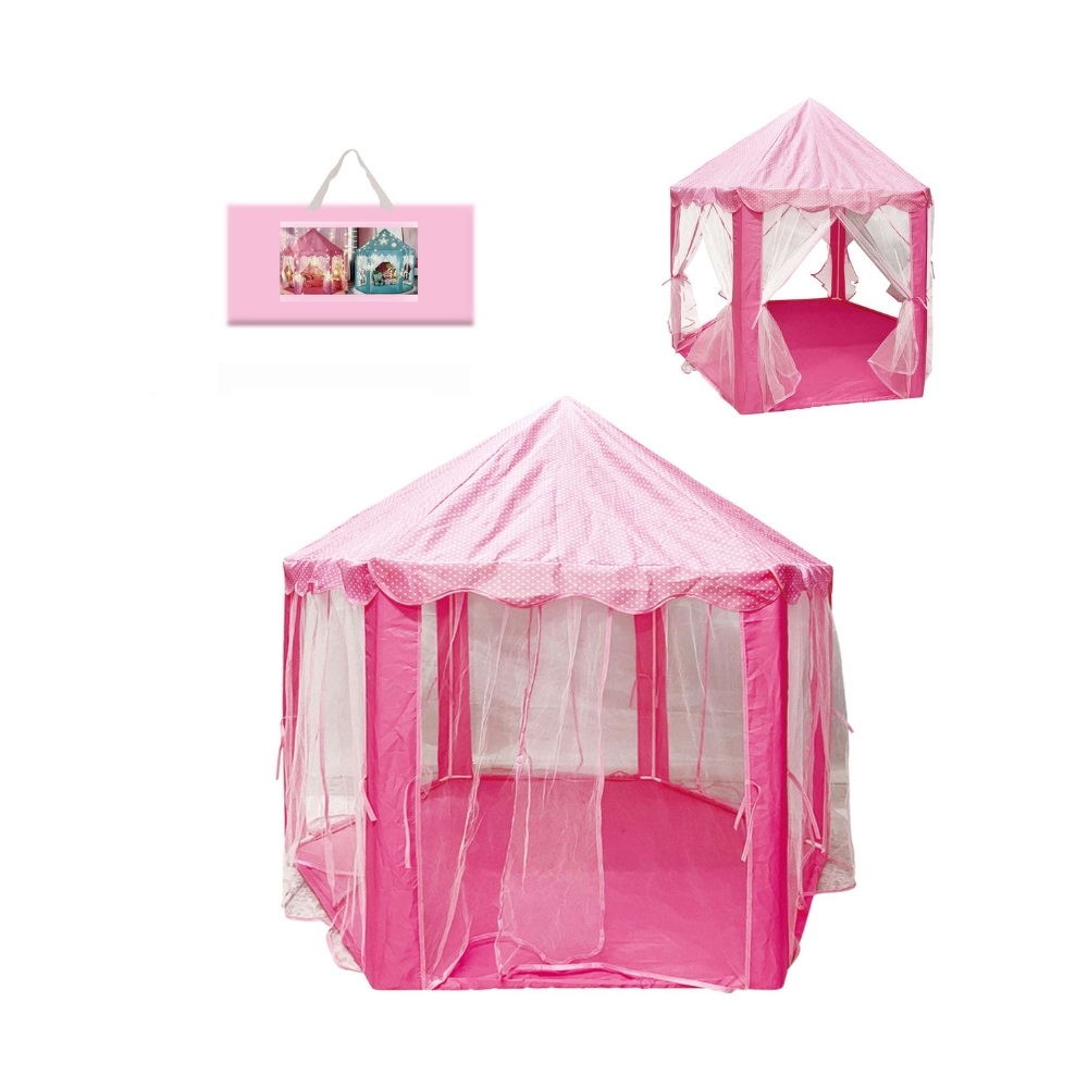 Cortul hexagonal cu perdele este un loc ideal de joaca pentru copii, oferindu-le un spatiu special in care pot visa, juca sau se relaxa. Designul hexagonal al cortului, impreuna cu perdelele decorative, creeaza un ambient placut, perfect pentru jocuri de interior sau petrecerea timpului liber. Acesta este usor de montat si de utilizat, iar materialele de calitate asigura durabilitate si siguranta.